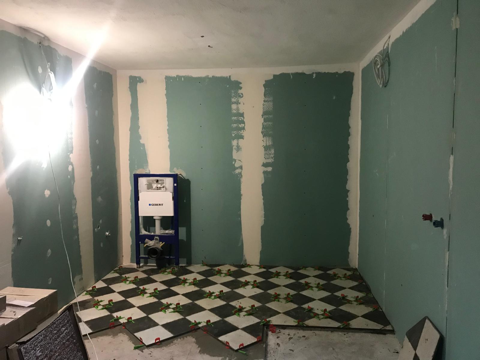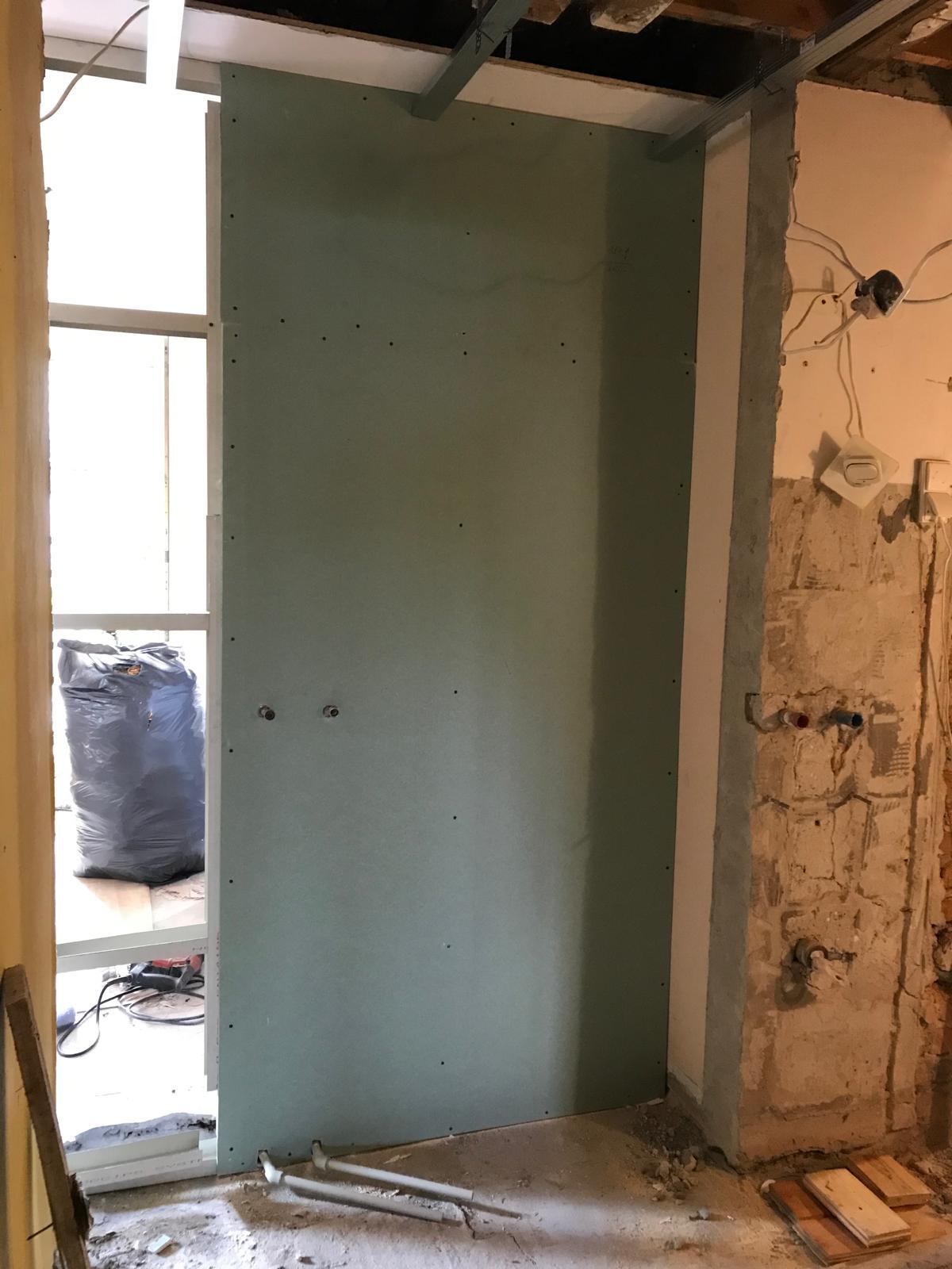 Laying plasterboards,