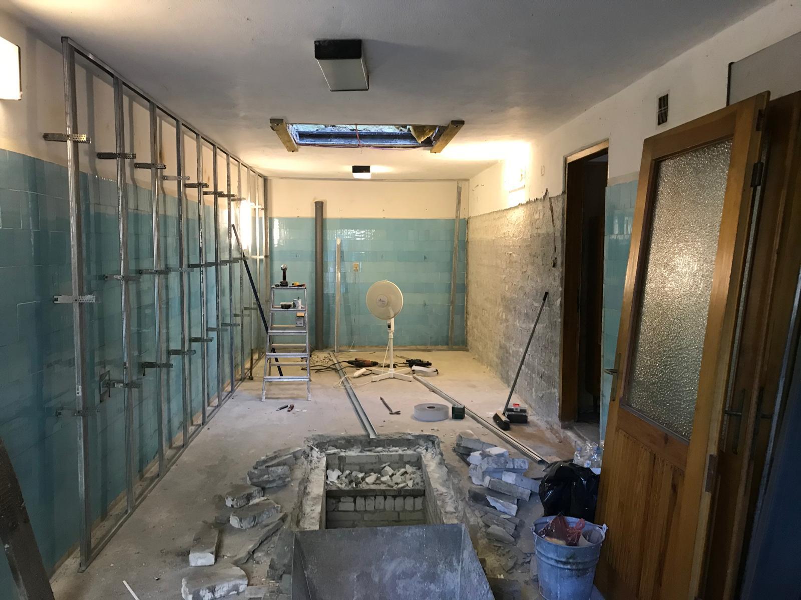 Moving the kitchen and creating an additional bedroom. Replacing flooring (porcelain tiles and vinyl).